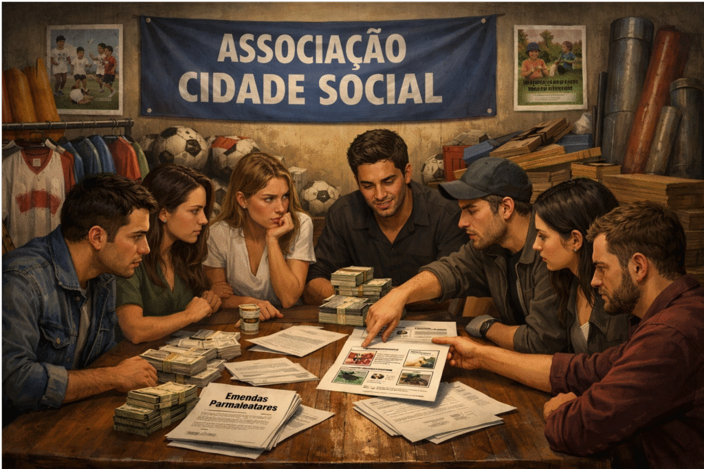 Associações de amigos, rurais ou de fomento ao esporte, muitas vezes criadas ou controladas pelo próprio vereador, são formalizadas para receber legalmente as emendas parlamentares.